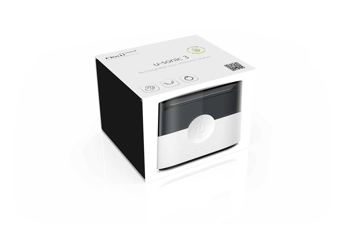 W przypadku użytkowania wkładek usznych, ochronników słuchu czy cienkich dźwiękowodów dokładne ich czyszczenie jest bardzo ważne dla utrzymania codziennej higieny osobistej oraz długotrwałej eksploatacji tych przedmiotów. Brud i woskowina mogą spowodować bowiem nieprawidłowe ich działanie i sprzyjać uszkodzeniom. Nowa ładowalna mini myjka ultradźwiękowa u–sonic 3 oferuje optymalne czyszczenie 360°. Silne fale ultradźwiękowe o częstotliwości 42 kHz rozchodzące się w czystej wodzie zapewniają higieniczną czystość. Dla intensywnego czyszczenia zalecane jest dodanie do wody małej ilości koncentratu do czyszczenia dostępnego u audiologa lub kropli łagodnego detergentu do mycia naczyń. Za pomocą przycisku sensorycznego można wybrać program krótki (4 minuty) lub program intensywny (8 minut) — reszta odbywa się w pełni automatycznie, sterowana procesorem. Akumulator litowy umożliwia pracę mobilną.